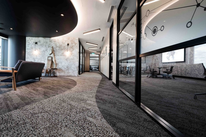 自然光是空間的一個(gè)主要特征,創(chuàng)造了溫暖而令人興奮的氣氛,讓人想起城市本身。通過(guò)對(duì)霓虹燈、銅管和城市元素等定制組件的比較,河流與城市景觀的關(guān)系,以及鵝卵石般的地毯紋理和顏色反映了布里斯班的河床、水和當(dāng)?shù)刂参铩?span style="font-size: 16px; font-family: 宋體; color: rgb(247, 150, 70);">#辦公室裝修公司#
