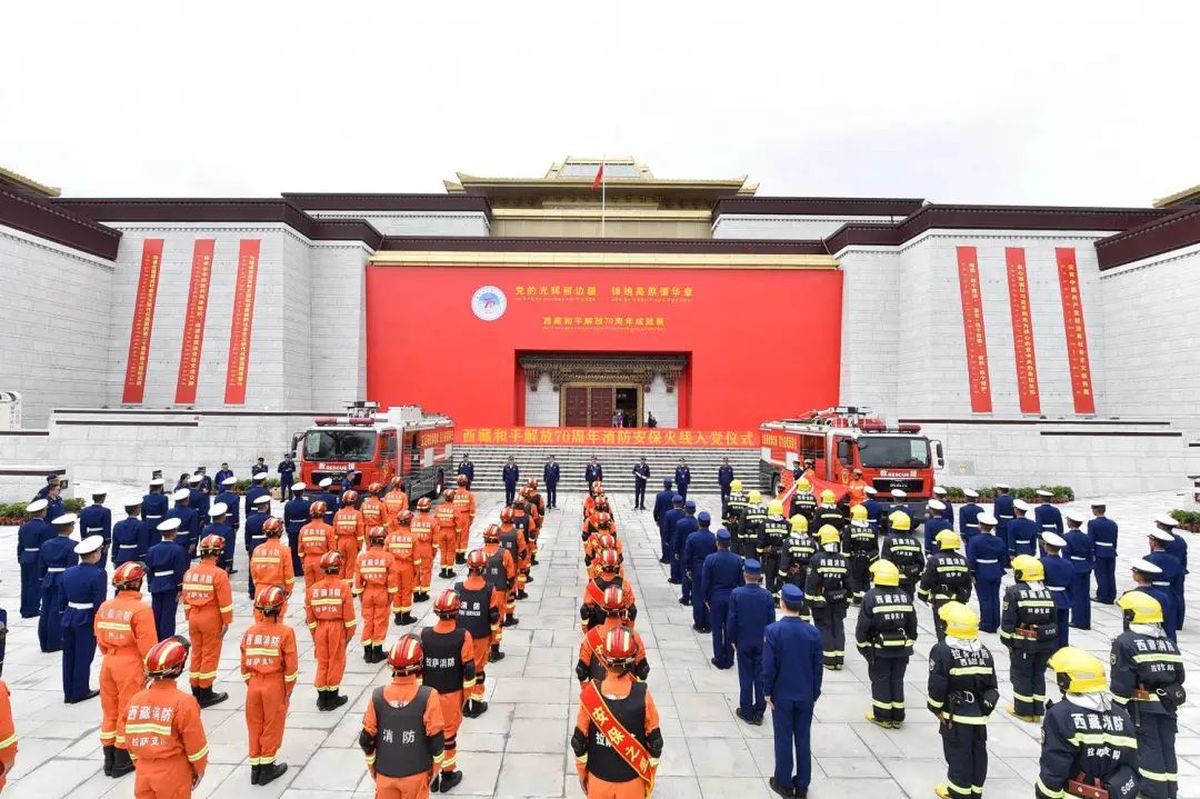 8月18日至19日,西藏和平解放70周年慶祝大會(huì)、文藝演出、展覽參觀等系列慶?;顒?dòng)相繼結(jié)束,核心區(qū)消防安保取得階段性勝利。為進(jìn)一步提振隊(duì)伍士氣、鼓舞指戰(zhàn)員斗志, 8月20日上午,西藏消防救援總隊(duì)(以下簡(jiǎn)稱“總隊(duì)”)隆重舉行西藏和平解放70周年慶?;顒?dòng)消防安?;鹁€入黨儀式。中央代表團(tuán)出席西藏和平解放70周年慶?;顒?dòng)消防安保指揮部總指揮、消防救援局黨委委員、副局長(zhǎng)魏捍東同志出席活動(dòng)并講話。儀式由總隊(duì)政委胡東寧主持,總隊(duì)總隊(duì)長(zhǎng)鄧立剛及總隊(duì)在家黨委委員、拉薩支隊(duì)、訓(xùn)保支隊(duì)110名安保執(zhí)勤指戰(zhàn)員代表參加了活動(dòng)。