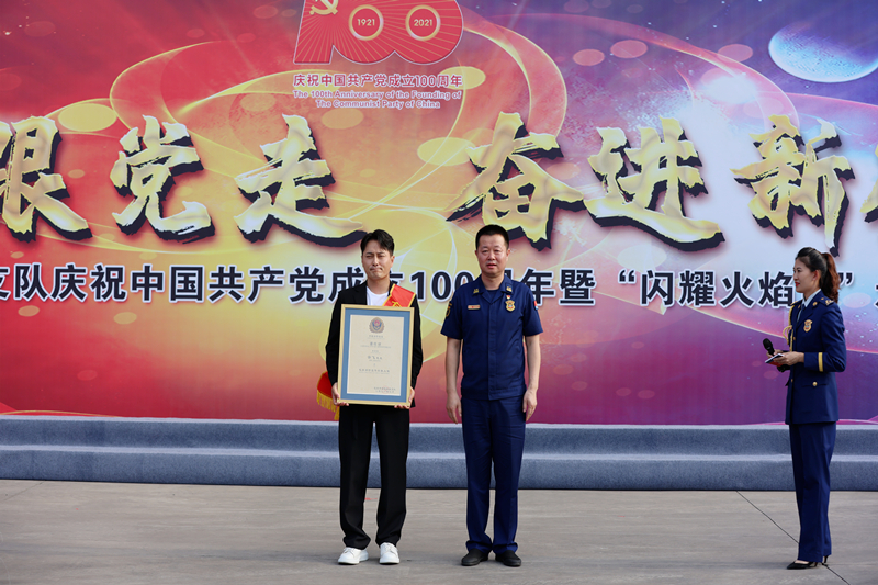 活動(dòng)中,在包頭市消防救援隊(duì)伍內(nèi)部推選的五位身邊英雄模范,及七一前夕受到表彰的8個(gè)先進(jìn)基層黨組織、15名優(yōu)秀共產(chǎn)黨員和5名優(yōu)秀黨務(wù)工作者來(lái)到現(xiàn)場(chǎng)。主持人對(duì)英模代表于維東、優(yōu)秀共產(chǎn)黨員代表韓亮進(jìn)行采訪,分享體會(huì)、感悟,盡管他們的身份和經(jīng)歷各不相同,但在他們身上都共同體現(xiàn)出了消防指戰(zhàn)員“不忘初心、牢記使命、忠誠(chéng)履職、奮勇?tīng)?zhēng)先”的精神風(fēng)貌,蘊(yùn)涵著催人奮進(jìn)的無(wú)窮精神力量。 隨后,劉寶主任為“頌歌獻(xiàn)給黨 奮進(jìn)新征程”主題合唱中獲得前三名的大隊(duì)頒獎(jiǎng)。包頭市消防救援支隊(duì)政委為支隊(duì)新聘任的著名歌唱家云飛頒發(fā)“包頭市消防救援支隊(duì)消防宣傳形象大使”聘書(shū)。