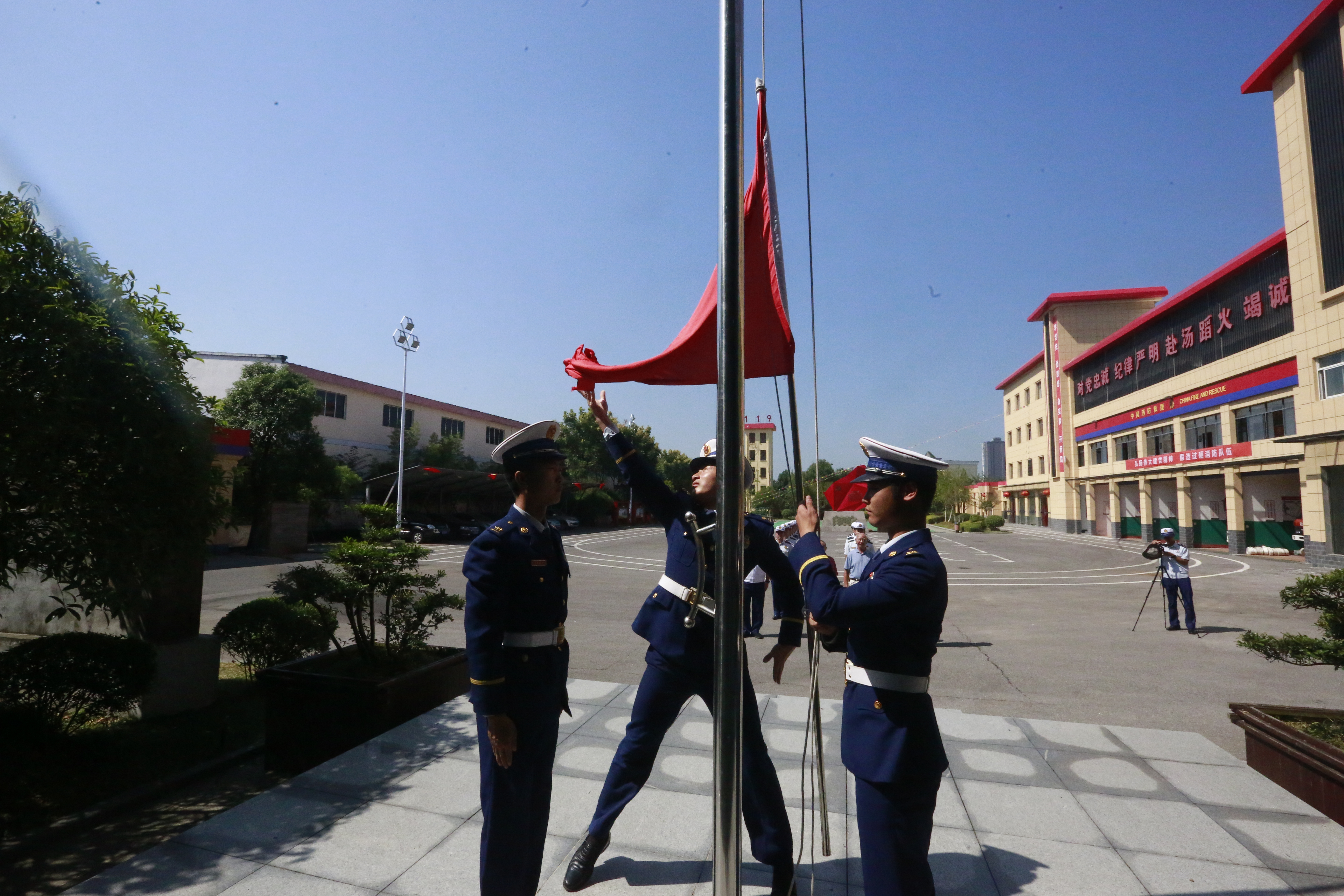 上午10時,大隊(duì)全體指戰(zhàn)員整齊列隊(duì),精神飽滿,隊(duì)容嚴(yán)整。三名護(hù)旗手邁著矯健、整齊的步伐,護(hù)送著五星紅旗走向國旗臺。伴隨著莊嚴(yán)雄壯的中華人民共和國國歌奏響,鮮艷的五星紅旗冉冉升起,全體指戰(zhàn)員懷著激動的心情、以飽滿的精神狀態(tài)向國旗致以崇高的敬禮,向偉大的祖國致以崇高的敬意。