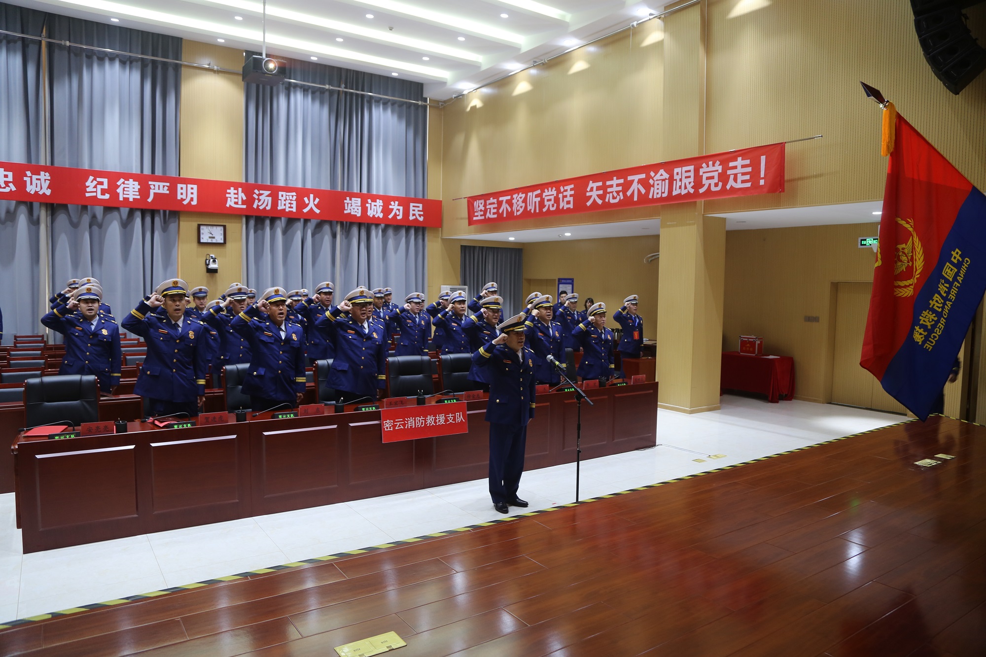 為深化黨史學(xué)習(xí)教育,教育引導(dǎo)全體消防指戰(zhàn)員不忘初心、砥礪前行,11月5日,在習(xí)近平總書記為國家綜合性消防救援隊伍授旗致訓(xùn)詞三周年之際,密云區(qū)消防救援支隊開展“牢記訓(xùn)詞精神、擔(dān)當(dāng)神圣使命、開創(chuàng)事業(yè)新局”主題黨日活動,支隊機(jī)關(guān)全體消防指戰(zhàn)員、基層隊站消防指戰(zhàn)員代表參加活動。