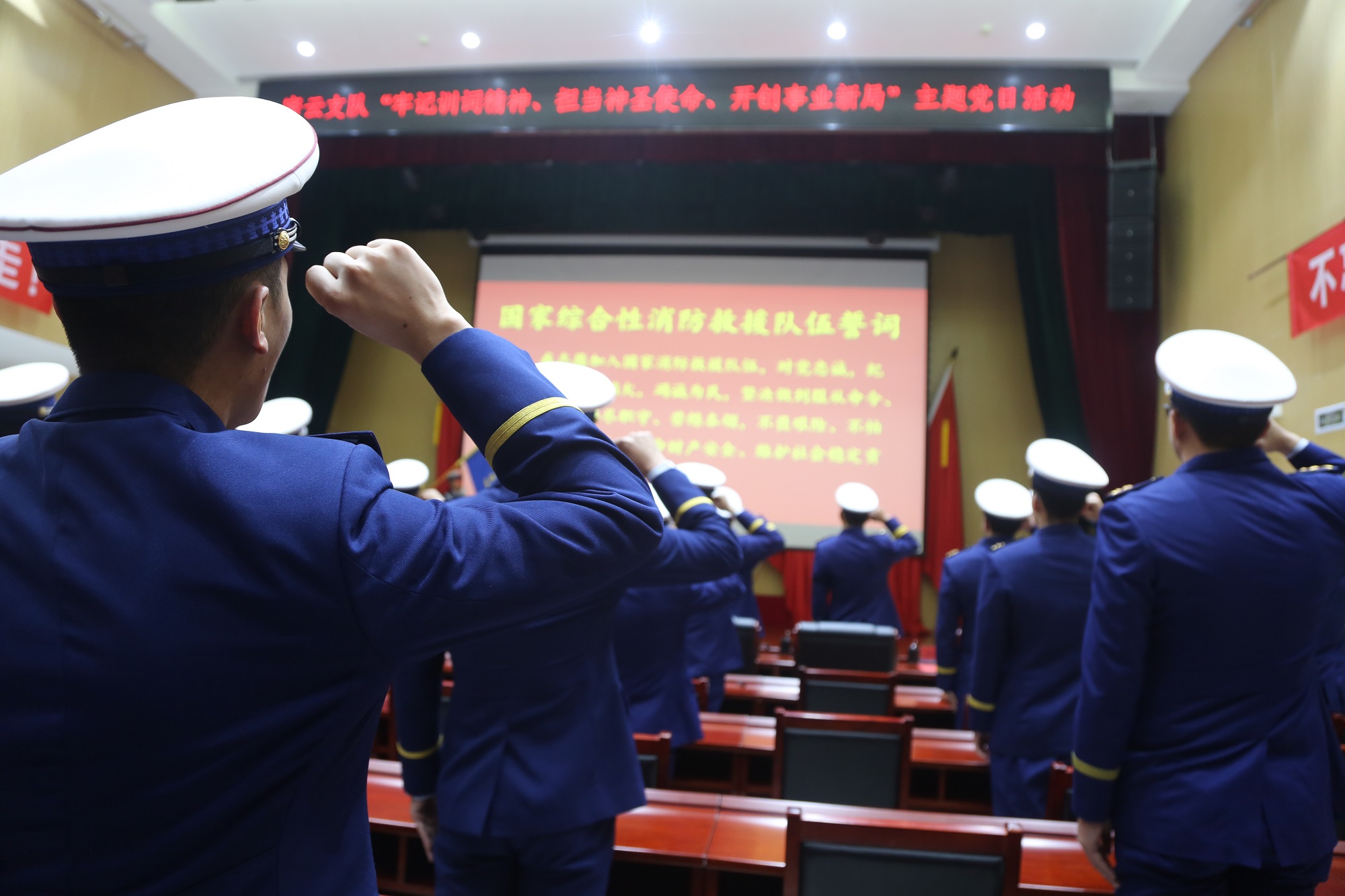 活動中,全體消防指戰(zhàn)員重溫學(xué)習(xí)了習(xí)近平總書記在全國綜合性消防救援隊伍授旗儀式上的講話精神。徐金龍政委帶領(lǐng)全體指戰(zhàn)員神情肅穆、舉起右拳,整齊地面向國家綜合性消防救援隊隊旗莊嚴(yán)宣誓:“我志愿加入中國消防救援隊伍,對黨忠誠,紀(jì)律嚴(yán)明,赴湯蹈火,竭誠為民,堅決做到服從命令、聽從指揮,恪盡職守、苦練本領(lǐng),不畏艱險、不怕犧牲,為維護(hù)人民生命財產(chǎn)安全、維護(hù)社會穩(wěn)定貢獻(xiàn)自己的一切?!币淮沃販厝腙犑脑~活動,就是一堂深刻的黨史教育課,更是一次靈魂的洗禮和升華。鏗鏘有力的宣誓聲,喊出了消防指戰(zhàn)員銳意進(jìn)取,矢志前行,投身新時代消防救援事業(yè)的決心與信心。