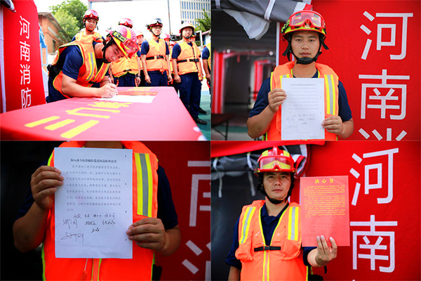 7月5日上午,在前方抗洪搶險(xiǎn)突擊隊(duì)臨時(shí)黨支部號召下,31名黨員自發(fā)在《申請加入前方抗洪搶險(xiǎn)黨員突擊隊(duì)申請書》上簽字。申請書上寫道,我主動(dòng)申請加入前方抗洪搶險(xiǎn)黨員突擊隊(duì),成為其中光榮的一員,自覺聽從黨支部號令,嚴(yán)格遵守政治紀(jì)律和戰(zhàn)時(shí)紀(jì)律,堅(jiān)決完成抗洪搶險(xiǎn)重大任務(wù);凝聚意志力量,帶頭執(zhí)行抗洪搶險(xiǎn)命令,充分發(fā)揮黨員突擊隊(duì)的先鋒作用;筑牢安全屏障,全力戰(zhàn)斗在抗洪搶險(xiǎn)最前沿,讓鮮紅的黨旗在抗洪搶險(xiǎn)陣地閃耀光芒!臨時(shí)黨支部根據(jù)申請人員名單,綜合考量,成立2支由15人組成的抗洪搶險(xiǎn)黨員突擊隊(duì),發(fā)揮尖刀作用,執(zhí)行急、難、險(xiǎn)、重等攻堅(jiān)任務(wù)。在身邊黨員感召下,前方抗洪搶險(xiǎn)突擊隊(duì)75名全體消防指戰(zhàn)員紛紛主動(dòng)請戰(zhàn),在《決心書》上簽字,并按手印。全體指戰(zhàn)員決心時(shí)刻保持臨戰(zhàn)狀態(tài),在抗洪搶險(xiǎn)等重大任務(wù)面前刀山敢上、火海敢闖,不畏艱險(xiǎn)、不怕犧牲,堅(jiān)決完成上級賦予的各項(xiàng)任務(wù)。