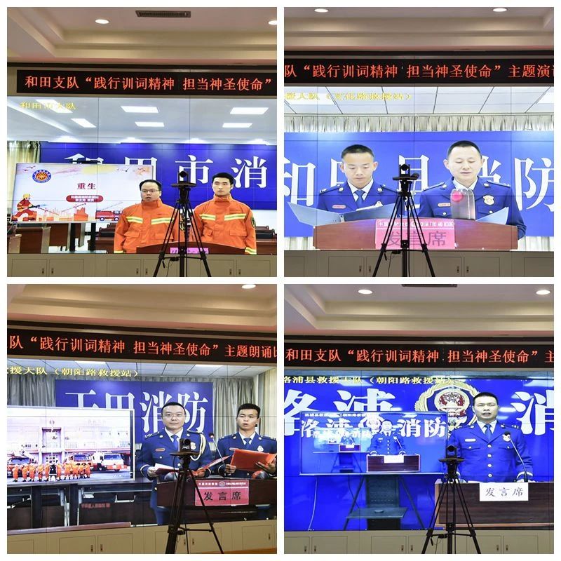 為深入學(xué)習(xí)貫徹習(xí)近平總書記重要訓(xùn)詞精神,扎實(shí)推進(jìn)“踐行訓(xùn)詞精神,擔(dān)當(dāng)神圣使命,堅(jiān)持五個(gè)不動搖”教育實(shí)踐活動縱深開展,引導(dǎo)和激勵(lì)指戰(zhàn)員擔(dān)當(dāng)新使命、邁向新征程。9月7日上午,和田支隊(duì)舉辦“踐行訓(xùn)詞精神,擔(dān)當(dāng)神圣使命”主題演講及朗誦比賽。來自基層大隊(duì)、消防站的9支代表隊(duì)共27名指戰(zhàn)員參加了比賽。