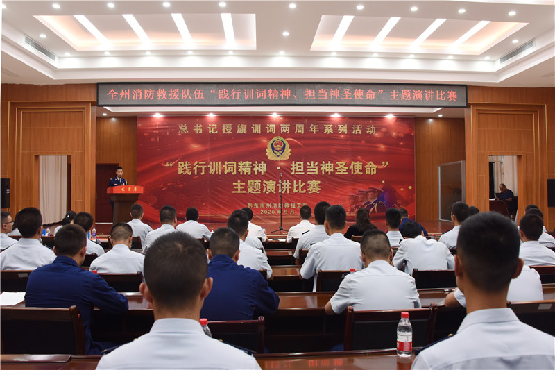 9月15日下午,黔東南州消防救援支隊(duì)隆重舉辦“踐行訓(xùn)詞精神·擔(dān)當(dāng)神圣使命”主題演講比賽,支隊(duì)王瑞禮政委、羅建勛副政委,機(jī)關(guān)全體指戰(zhàn)員在主會(huì)場觀看比賽,全州消防指戰(zhàn)員、專職消防員、消防文員在分會(huì)場觀看視頻直播。比賽還邀請(qǐng)了貴州電視臺(tái)資深新聞?dòng)浾邚埜傇吕蠋熥鳛閷I(yè)評(píng)委。