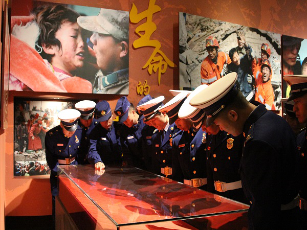 青海玉樹消防組織全體指戰(zhàn)員參觀玉樹地震遺址博物館