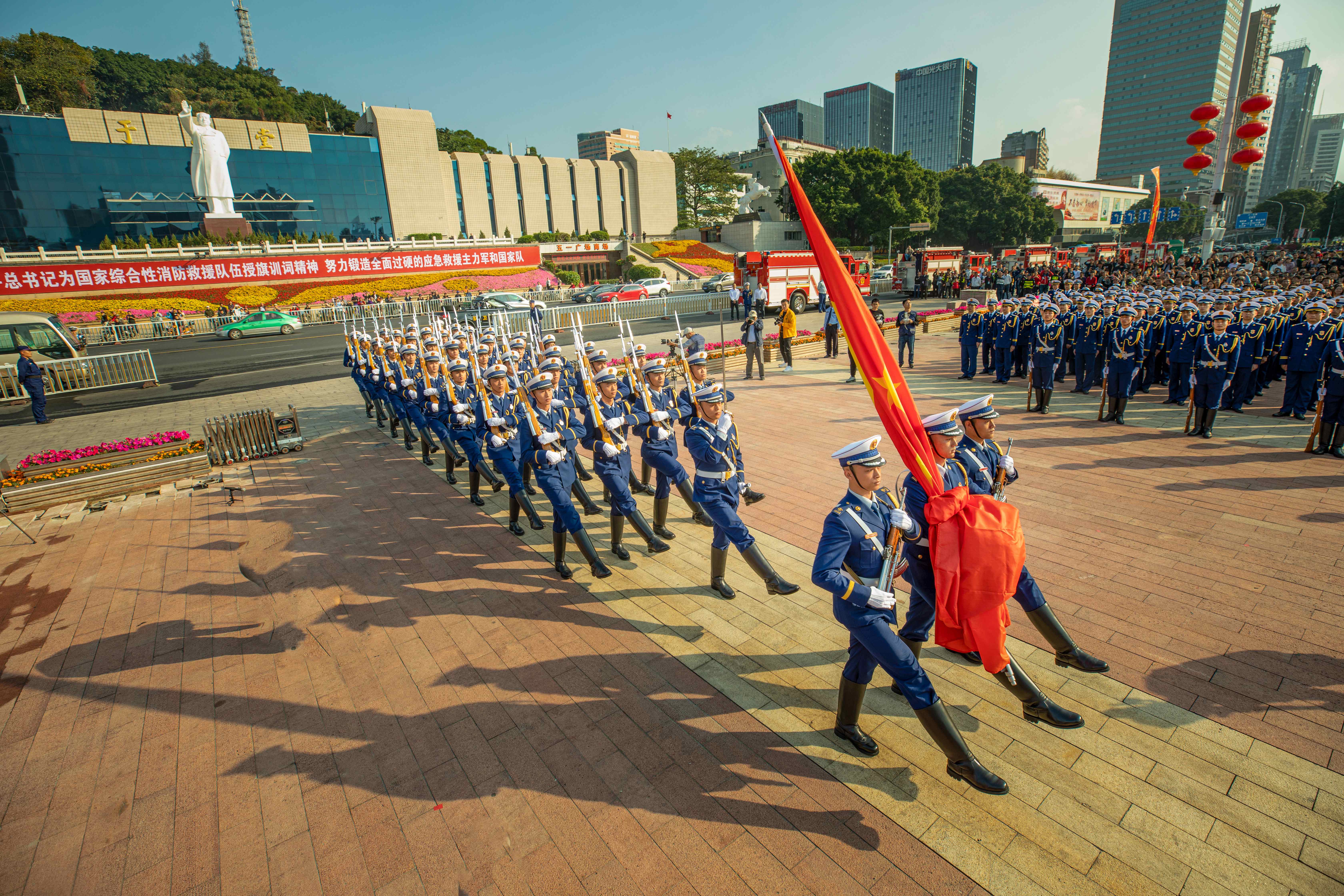 福州市三坊七巷消防救援站組建于1990年,是一支承擔(dān)著守護古厝、護衛(wèi)國旗、應(yīng)急救援等多重任務(wù)的消防救援隊伍。自1991年元旦起,這支隊伍承擔(dān)執(zhí)行福州市五一廣場每日國旗升降任務(wù)。這支隊伍升起的第一面國旗就是從時任福州市委書記的習(xí)近平同志手中接過的,是全國唯一承擔(dān)省會城市中心廣場國旗升降任務(wù)的消防救援隊伍。30年來,他們牢記囑托、風(fēng)雨無阻,實現(xiàn)了22000余次升降國旗零失誤;作為消防救援隊伍,他們積極履行主責(zé)主業(yè),加強防火巡查,守護國內(nèi)現(xiàn)存規(guī)模最大、保護最完整的明清歷史文化街區(qū)三坊七巷,實現(xiàn)了8年零火災(zāi)、30年無重大火情;他們苦練精兵,研究創(chuàng)新滅火救援技戰(zhàn)術(shù),多次參與各類重大滅火救援行動;他們心系群眾,成立“國旗衛(wèi)士雷鋒服務(wù)隊”,竭盡全力為群眾做好事、辦實事、解難事,寫下愛民親民的動人篇章。