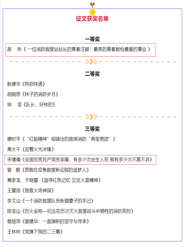 據(jù)了解,為慶祝中國共產(chǎn)黨成立100周年,贊頌消防成就、弘揚(yáng)消防精神、謳歌消防英雄,《中國消防》雜志社舉辦了以“黨旗下的消防故事”為主題的征文活動,共收到作品183篇,經(jīng)評選委員會評選,共有14篇作品分獲一二三等獎。