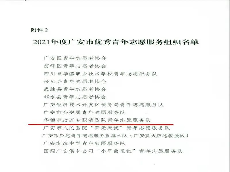 為表?yè)P(yáng)先進(jìn)、弘揚(yáng)正氣,進(jìn)一步發(fā)揮典型示范作用,激勵(lì)更多青年積極參與志愿服務(wù),12月1日,共青團(tuán)廣安市委發(fā)文通報(bào)表?yè)P(yáng)2021年度廣安市青年志愿服務(wù)先進(jìn)典型,華鎣市政府專(zhuān)職隊(duì)青年志愿服務(wù)隊(duì)榮獲“2021年度廣安市優(yōu)秀青年志愿服務(wù)組織”的稱(chēng)號(hào)。