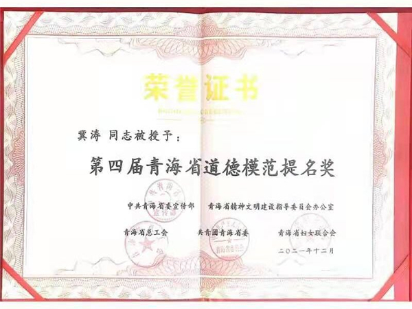 今年4月,省委宣傳部、省文明辦、省總工會(huì)、團(tuán)省委、省婦聯(lián)組織開(kāi)展第四屆青海省道德模范推薦評(píng)選活動(dòng),經(jīng)廣泛推薦、逐級(jí)審核、網(wǎng)上投票、綜合評(píng)定等程序,海西州消防救援支隊(duì)消防員冀濤被省文明委授予第四屆青海省道德模范提名獎(jiǎng)。