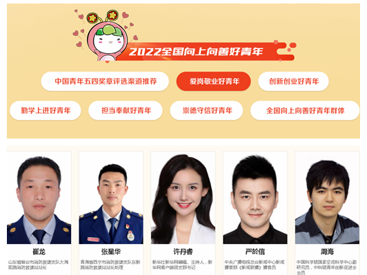 近日,共青團(tuán)中央公布了2022年“全國(guó)向上向善好青年”名單,全國(guó)142名優(yōu)秀青年和23個(gè)青年群體獲此榮譽(yù),其中,青海省果洛藏族自治州消防救援支隊(duì)榮獲“全國(guó)向上向善好青年群體”。青海省西寧市消防救援支隊(duì)東新路消防救援站站長(zhǎng)助理張星華同志榮獲“愛(ài)崗敬業(yè)好青年”稱號(hào)。