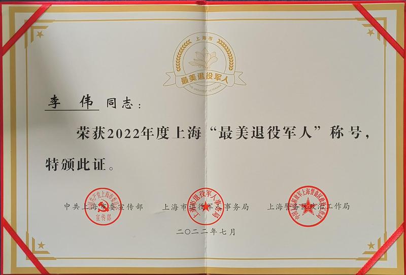 近日,由中共上海市委宣傳部、上海市退役軍人事務(wù)局和上海警備區(qū)政治工作局聯(lián)合組織的2022年度“最美退役軍人”學(xué)習(xí)宣傳活動(dòng)中,經(jīng)廣泛發(fā)動(dòng)、層層推薦、嚴(yán)格評(píng)審,共產(chǎn)生30個(gè)2022年度上?!白蠲劳艘圮娙恕鲍@評(píng)對(duì)象。黃浦區(qū)消防救援支隊(duì)李偉同志獲評(píng)該稱號(hào),向社會(huì)充分展示了新時(shí)期“初心之地火焰藍(lán)”不忘初心使命、永葆軍人本色的優(yōu)秀品質(zhì)。