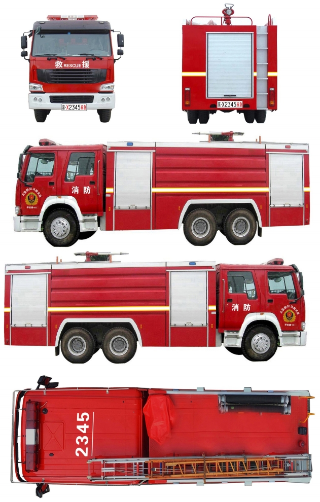 專用號牌分為汽車號牌和摩托車號牌兩種。汽車號牌每副兩只,分別懸掛在車輛前后部;摩托車號牌為單只,懸掛在車輛后部。專用號牌為白底黑字,配以紅色漢字“應(yīng)急”,其中:汽車號牌字符共8位,依次為?。ㄗ灾螀^(qū)、直轄市)漢字簡稱、所屬救援隊伍代號、四位序號和漢字“應(yīng)急”;摩托車號牌字符共7位,依次為漢字“應(yīng)急”、?。ㄗ灾螀^(qū)、直轄市)漢字簡稱、三位序號和所屬救援隊伍代號。懸掛專用號牌車輛外觀參照國際通行做法進行標(biāo)識涂裝,車身前面涂裝“救援RESCUE”字樣,車身側(cè)面涂裝國家綜合性消防救援隊伍徽標(biāo)、“消防”字樣和所屬單位名稱、車輛編號,車頂涂裝車輛編號,車身兩側(cè)及車輛尾部涂裝裝飾條。