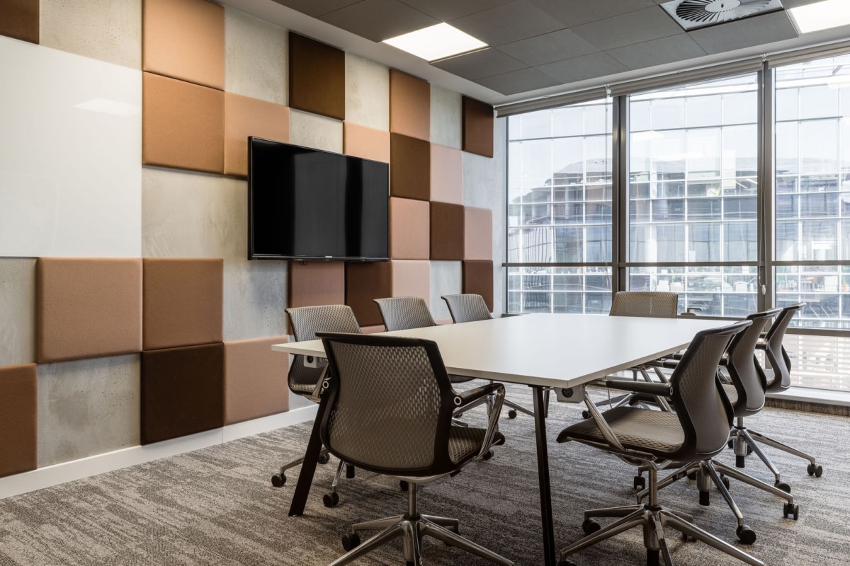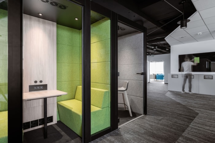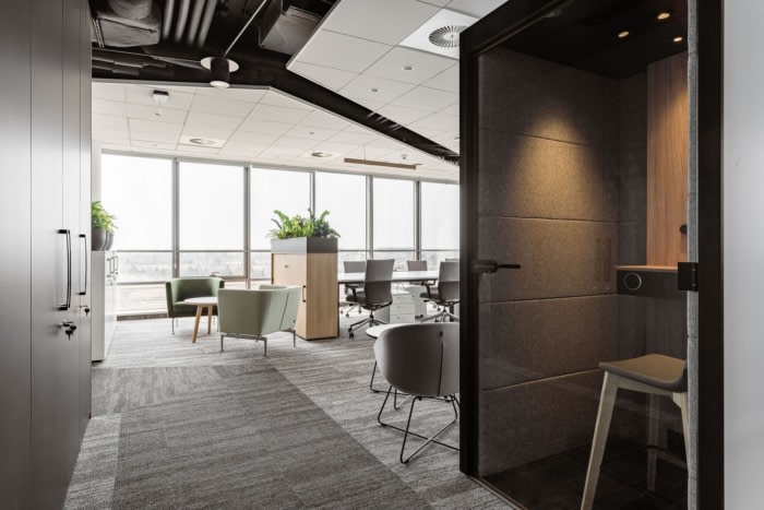 入口空間寬敞舒適,訪客可以從一開(kāi)始就感受到辦公室宜人的工業(yè)氛圍。公司客人可以利用咖啡點(diǎn)的空間自行準(zhǔn)備咖啡??Х葯C(jī)上方有一盞霓虹燈。讓我們從咖啡開(kāi)始。它鼓勵(lì)我們喝一杯芳香的咖啡,整個(gè)安排是基于一個(gè)開(kāi)放的計(jì)劃。該空間分為兩部分——上述入口區(qū)域可直接進(jìn)入會(huì)議室,第二部分為員工專用區(qū)域。我們可以找到私人會(huì)議室和電話亭。#辦公室裝修公司#