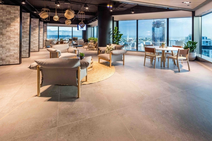 自然光是空間的一個(gè)主要特征,創(chuàng)造了溫暖而令人興奮的氣氛,讓人想起城市本身。通過(guò)對(duì)霓虹燈、銅管和城市元素等定制組件的比較,河流與城市景觀的關(guān)系,以及鵝卵石般的地毯紋理和顏色反映了布里斯班的河床、水和當(dāng)?shù)刂参铩?span style="font-size: 16px; font-family: 宋體; color: rgb(247, 150, 70);">#辦公室裝修公司#