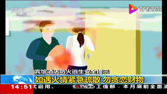 火災(zāi)撤離時,要聽從賓館工作人員的引導(dǎo)。當(dāng)遇到?jīng)]有煙火或煙氣較小時,應(yīng)迅速疏散到安全出口撤離,切勿貪戀財物錯過逃生時機。