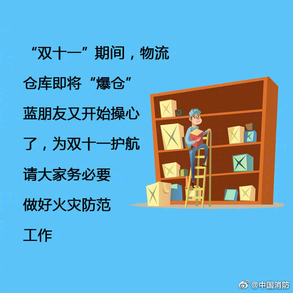 雙十一,大家在享受快樂購(gòu)物的同時(shí)千萬(wàn)別忘記在處理訂單過程中的消防安全。倉(cāng)儲(chǔ)安全要記牢,物流途中要謹(jǐn)慎,配送期間要注意,直播間“帶貨”安全是首要.....工作不管有多忙,防火安全不能忘。戳圖了解吧~