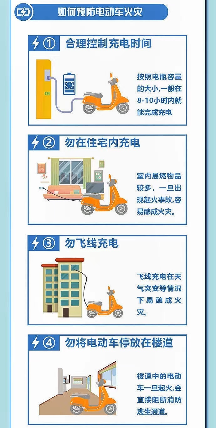 電動車作為我們常用的代步工具,給我們的出行帶來了便利,但如果不規(guī)范使用它,會給我們的生命財產安全,造成重大損失。我們應該如何預防電動車火災的發(fā)生呢?