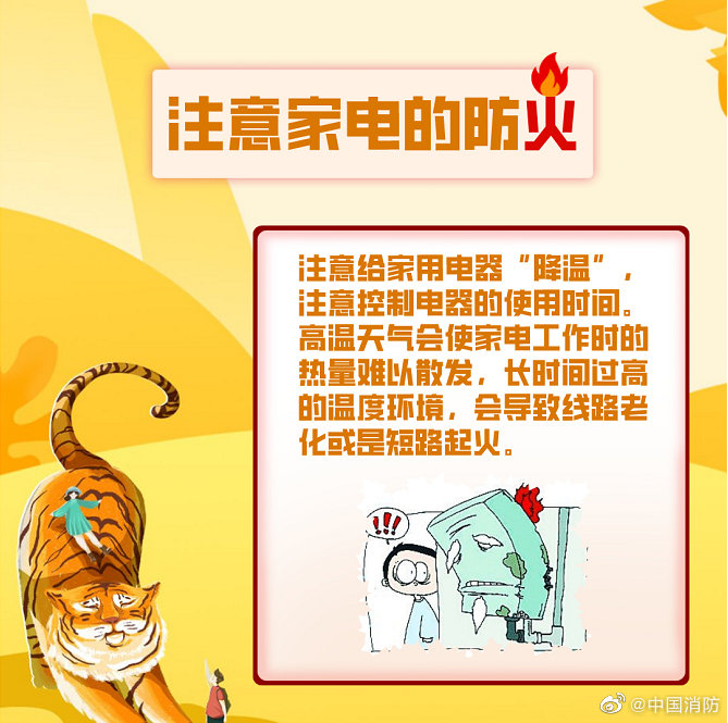 俗話說“秋后一伏熱得跳”。高溫持續(xù),燥熱不減,稍有不慎很有可能發(fā)生火情。電器線路常檢查,以防老化短路和漏電;出門記得切斷電源;定期檢查燃?xì)夤艿?;注意用火不離人...這份消防安全小提示,送給每一個人。戳圖~