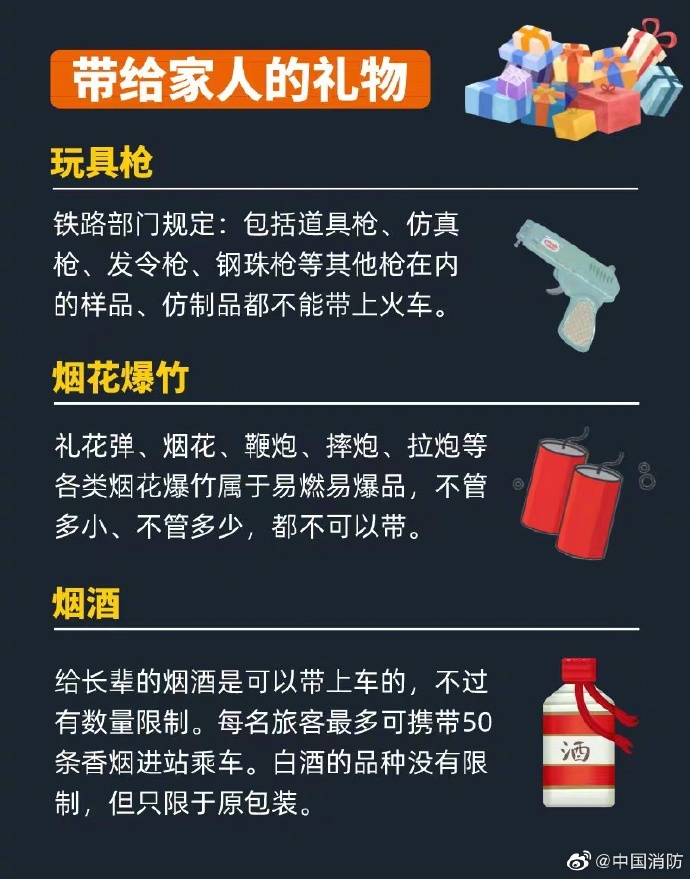 春運大幕已經(jīng)開啟,你收拾好行李準備回家了嗎?旅途當(dāng)中,消防安全可不能忘:隨身攜帶的物品要留心、帶給家人的禮物要妥善選擇、當(dāng)然還要做好自身防護哦~春運安全小貼士,戳圖~