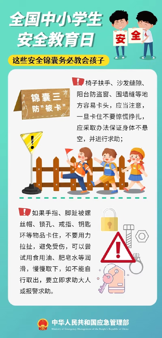兒童在生活中容易遇到哪些危險隱患?孩子們在面對危險時能夠正確自救嗎?每年3月最后一周的周一是全國中小學(xué)生安全教育日,這份安全錦囊,務(wù)必教會孩子↓↓