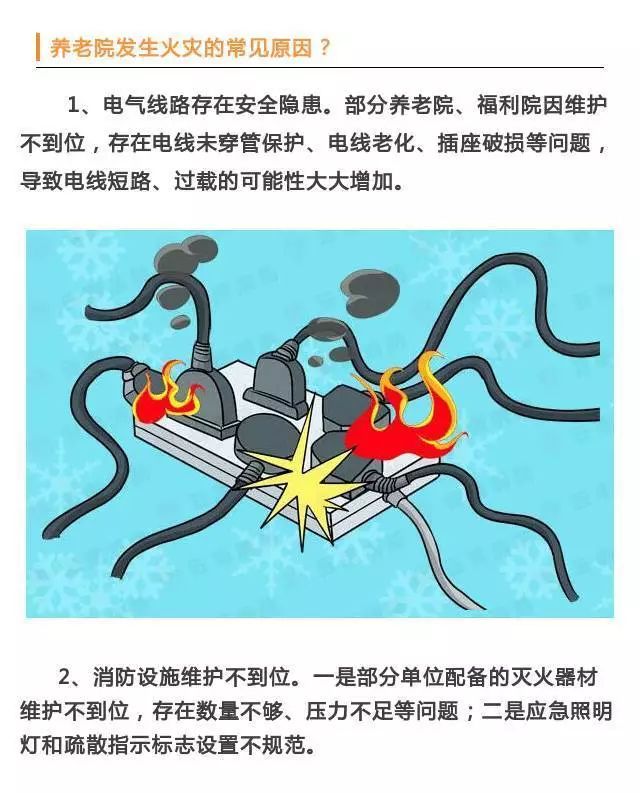 老年人行動緩慢,逃生困難,已成為火災(zāi)中最大的弱勢群體之一。養(yǎng)老院、福利院等養(yǎng)老機構(gòu)的消防安全問題,也給人們敲響了警鐘。養(yǎng)老機構(gòu)普遍存在的火災(zāi)隱患有哪些?火災(zāi)發(fā)生的常見原因有哪些?發(fā)生火災(zāi)后,老人應(yīng)如何逃生、自救呢?