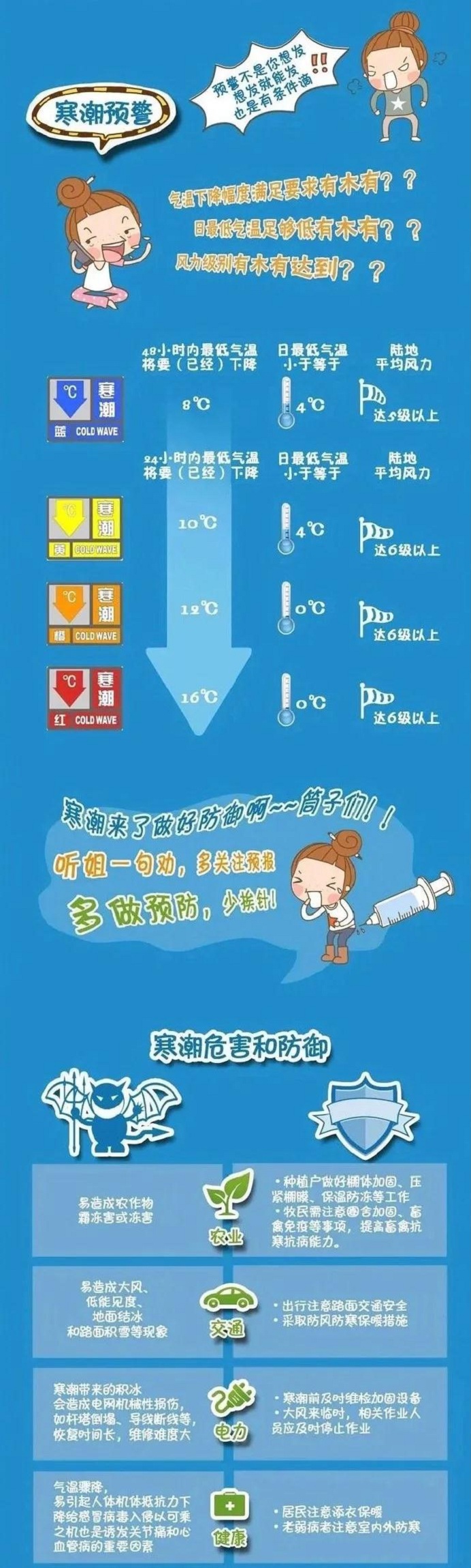 寒潮天氣過程降溫劇烈,氣溫低、降雪強(qiáng)、風(fēng)力大、持續(xù)時(shí)間長,將出現(xiàn)較嚴(yán)重的凍害。你對(duì)寒潮了解多少?一起讀圖學(xué)習(xí)吧!