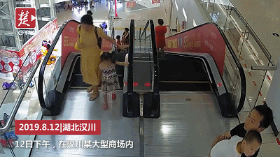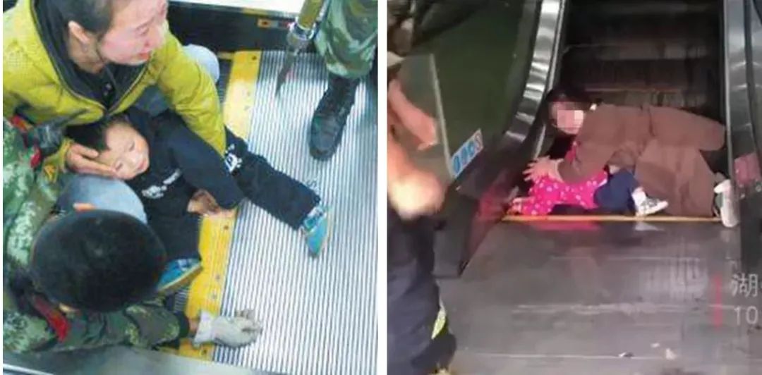 乘扶梯過程中,大人要時刻留意小孩