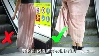 盡量避免穿垂地式的衣服和軟膠鞋乘扶梯。扶梯的縫隙處,極其容易夾住衣物和鞋子,釀成事故。