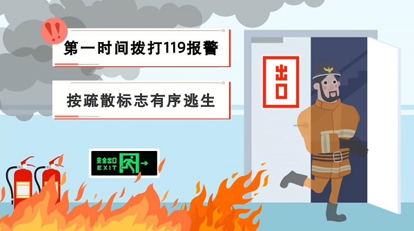 第一時間撥打119報警,按疏散標志有序逃生。不要乘坐電梯,謹防被困電梯發(fā)生危險。