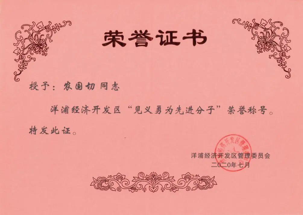 圖丨2020年獲評“見義勇為先進分子”