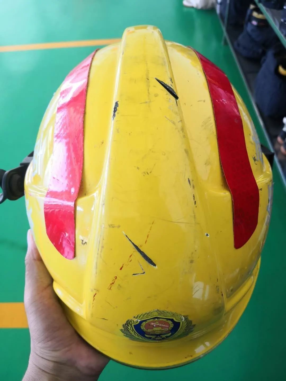圖丨被砍3刀的消防頭盔