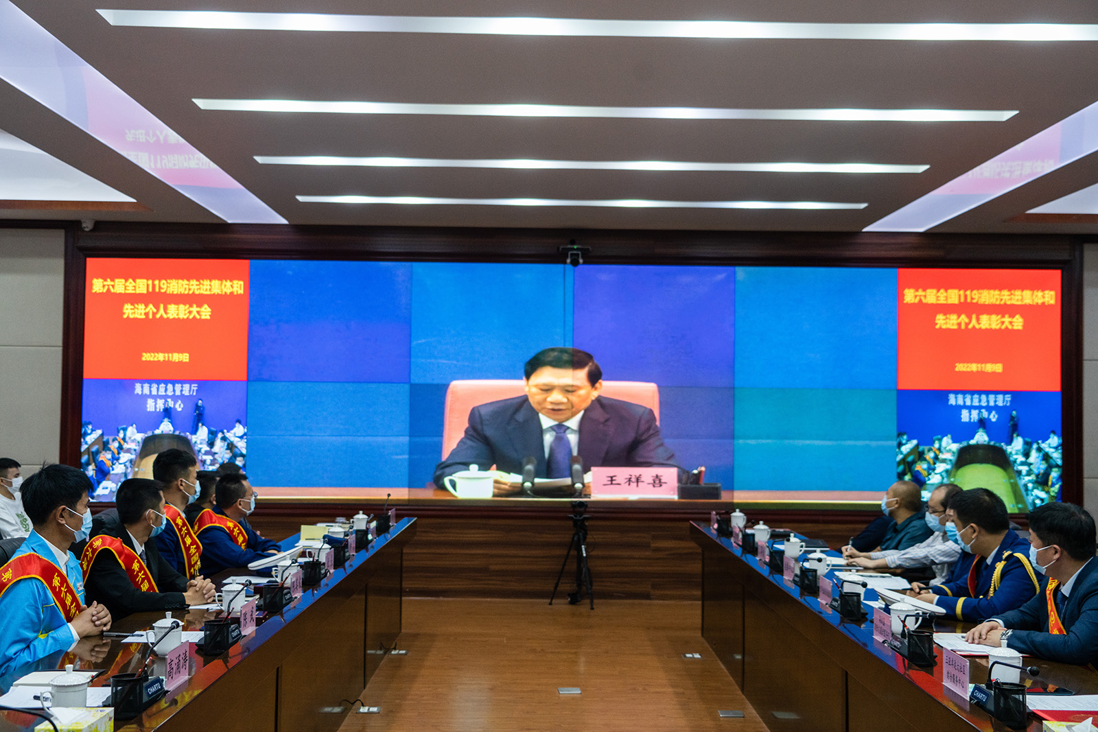 應(yīng)急管理部表彰大會(huì)結(jié)束后,海南省在應(yīng)急管理廳分會(huì)場(chǎng)以視頻形式召開(kāi)榮獲全國(guó)119消防獎(jiǎng)先進(jìn)集體和先進(jìn)個(gè)人表彰大會(huì)。省消防救援總隊(duì)總隊(duì)長(zhǎng),省應(yīng)急管理廳副廳長(zhǎng)等領(lǐng)導(dǎo)出席會(huì)議。會(huì)議宣讀了海南省獲得119消防獎(jiǎng)的先進(jìn)集體和個(gè)人名單,出席會(huì)議的領(lǐng)導(dǎo)向未到北京主會(huì)場(chǎng)參會(huì)的3個(gè)先進(jìn)集體和4名先進(jìn)個(gè)人頒發(fā)獎(jiǎng)?wù)陋?jiǎng)牌。省消防救援總隊(duì)總隊(duì)長(zhǎng)對(duì)受到表彰的先進(jìn)集體和個(gè)人表示祝賀,并就廣泛開(kāi)展向先進(jìn)典型學(xué)習(xí)活動(dòng)進(jìn)行了部署。
