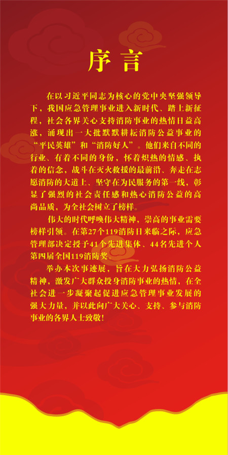 在第27個(gè)全國“119”消防日來臨之際,為大力弘揚(yáng)消防公益精神,激發(fā)廣大群眾投身消防事業(yè)的熱情,在全社會進(jìn)一步凝聚起促進(jìn)應(yīng)急管理事業(yè)發(fā)展的強(qiáng)大正能量,11月5日,應(yīng)急管理部消防救援局精心組織的第四屆全國119消防獎先進(jìn)集體和先進(jìn)個(gè)人事跡展在局機(jī)關(guān)正式開展,圖文并茂地展示了本屆受表彰集體和個(gè)人的先進(jìn)事跡。