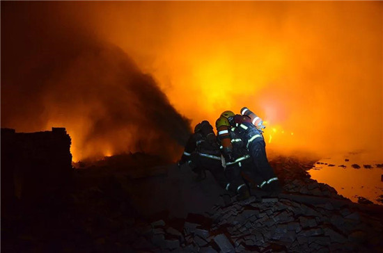 2015年5月25日,一輛滿載30噸液態(tài)氧的重型槽罐車,在鬧市區(qū)發(fā)生側(cè)翻,引起20輛車追尾,情況緊急。專職隊到場后,配合消防部門,迅速疏散周圍群眾,快速破拆車輛、營救被困傷員,連續(xù)奮戰(zhàn)12個小時,成功處置了險情。2016年7月19日,當(dāng)?shù)匾换S廠房突發(fā)火災(zāi),毗鄰倉庫里儲存有20余噸金屬鈉和有毒化學(xué)品氰化鈉,直接威脅著數(shù)千名群眾的生命安全。專職隊接警后,第一時間到達(dá)現(xiàn)場,配合消防部門,經(jīng)過9個多小時的鏖戰(zhàn),成功撲滅了火災(zāi)。?