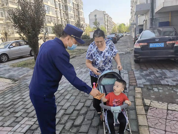 消防宣傳人員利用消防宣傳車循環(huán)播放近期全國特大火災(zāi)事故案例及消防安全警示片,讓群眾更直觀地感受消防、學(xué)習(xí)消防、參與消防,傳播消防“好聲音”。消防宣傳車巡回期間,車載“小喇叭”高頻率播放消防安全提示,真正的將“好聲音”傳播至千家萬戶,活動期間,宣傳人員在現(xiàn)場對群眾發(fā)放《消防安全常識之家庭火災(zāi)防范》等宣傳資料,并科普消防安全常識,教會如何使用滅火器、消火栓,遇到火災(zāi)該如何正確的逃生自救,讓群眾了解并認識到消防安全的重要性。