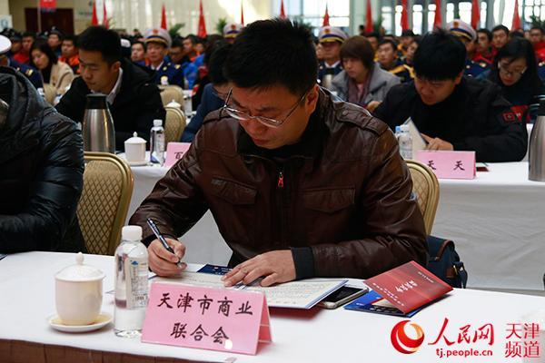 人民網(wǎng)天津11月28日電 26日下午,“天津市消防公益聯(lián)盟”啟動(dòng)儀式在天津舉行。天津市消防總隊(duì)總隊(duì)長(zhǎng)張福好,市民政局副局長(zhǎng)、社會(huì)組織管理局局長(zhǎng)劉麗紅,市郵政管理局副局長(zhǎng)龐冠新,市公安局治安管理總隊(duì)總隊(duì)長(zhǎng)董金平,市消防總隊(duì)副總隊(duì)長(zhǎng)王以革、總工程師李慶功作為嘉賓出席儀式。天津全市22家行業(yè)協(xié)會(huì)代表、10家快遞企業(yè)代表、5家保安公司代表等共計(jì)4000余人在主會(huì)場(chǎng)、分會(huì)場(chǎng)參加系列活動(dòng)。全市1200余個(gè)社會(huì)團(tuán)體和200余萬志愿者線上線下同步互動(dòng)。