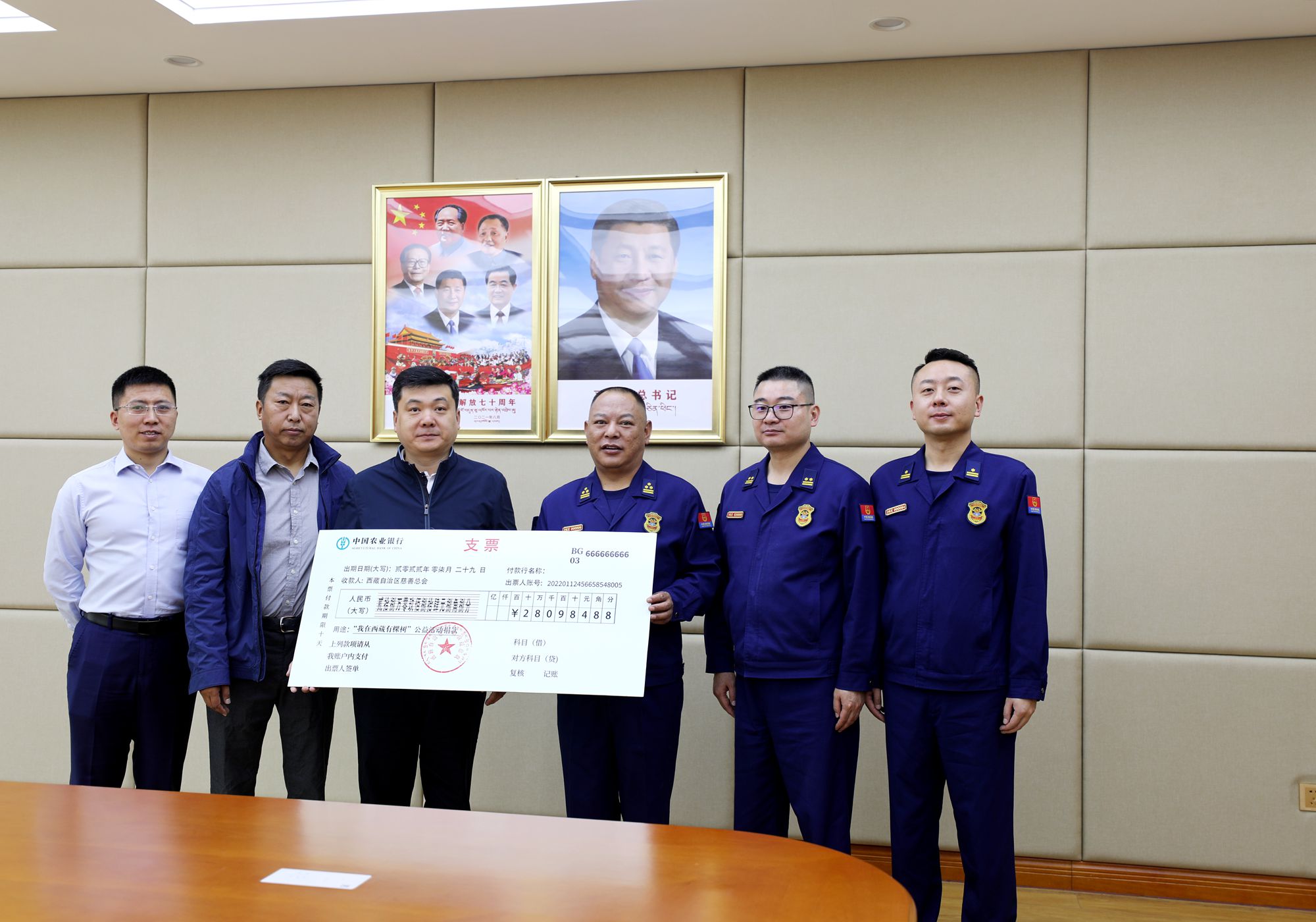 7月份以來(lái),西藏消防救援總隊(duì)認(rèn)真貫徹落實(shí)自治區(qū)黨委政府的決策部署,積極踐行社會(huì)責(zé)任,主動(dòng)彰顯隊(duì)伍擔(dān)當(dāng),在主動(dòng)承擔(dān)南北山綠化工程供水保障和育苗培苗任務(wù)的基礎(chǔ)上,廣泛動(dòng)員全區(qū)7個(gè)地市、140余個(gè)縣區(qū)消防救援力量同步開(kāi)展“我在西藏有棵樹(shù)”捐款活動(dòng),累計(jì)募集捐款306501.88元。8月1日上午,西藏總隊(duì)舉辦“我在西藏有棵樹(shù)”慈善捐款捐贈(zèng)儀式,總隊(duì)及相關(guān)部門(mén)領(lǐng)導(dǎo)出席會(huì)議。