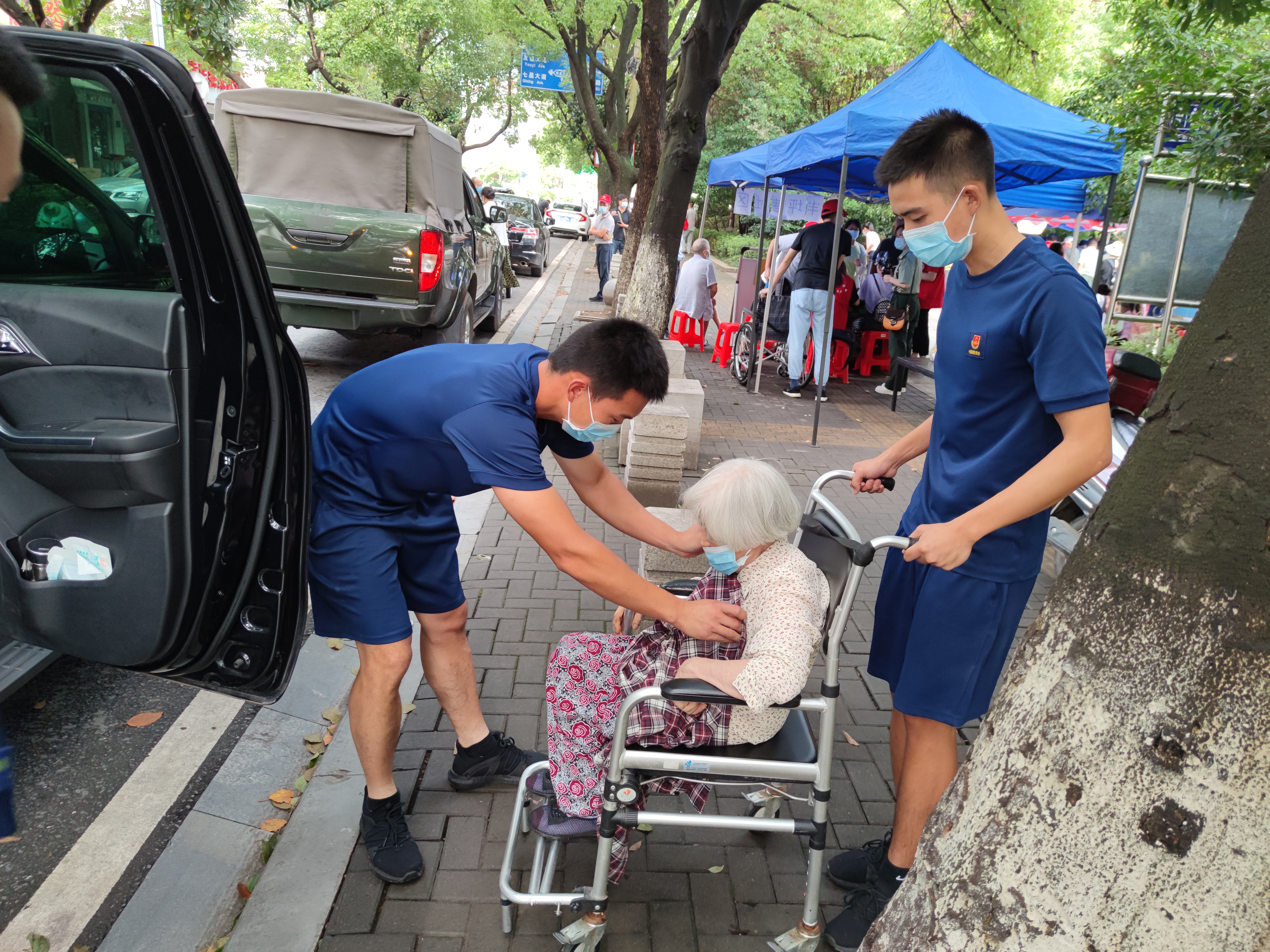 “您好!請問您打過接種疫苗嗎?”“麻煩您出示身份證”“請?zhí)顚懸幌履木幼〉刂贰薄ㄟ^主動出擊與電話聯(lián)系對轄區(qū)未接種人員進行排查,對行動不便的老人采取專車接送疫苗接種地點。消防指戰(zhàn)員引導群眾做好信息登記、排隊接種和接種后留觀,耐心地給接種群眾解答接種相關注意事項,對一些專業(yè)性較強的問題,幫忙聯(lián)系醫(yī)務人員解答,細心開導情緒緊張的接種群眾。