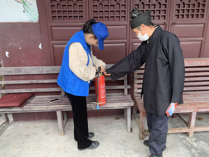 活動(dòng)中,消防志愿者首先幫助宗教場(chǎng)所對(duì)建筑內(nèi)部每一處可能存在火災(zāi)隱患的角落都仔細(xì)排查,對(duì)場(chǎng)所內(nèi)的消防栓、滅火器等設(shè)備是否完整好用等都進(jìn)行了檢查。同時(shí),消防志愿者結(jié)合國(guó)內(nèi)典型文物古建筑火災(zāi)事故案例,為場(chǎng)所負(fù)責(zé)人深入分析了椽木結(jié)構(gòu)建筑的火災(zāi)危險(xiǎn)性,強(qiáng)調(diào)了宗教場(chǎng)所火災(zāi)防控工作的重要性;并向寺廟消防安全管理人員詳細(xì)講解了火災(zāi)的危害、火災(zāi)的預(yù)防、應(yīng)急疏散、火災(zāi)逃生和初起火災(zāi)的撲救等消防常識(shí),發(fā)放了消防安全手冊(cè),講解了安全手冊(cè)中提到的宗教活動(dòng)場(chǎng)所中的“三定三禁”。針對(duì)一些宗教場(chǎng)所中人員年齡較大對(duì)滅火器材使用不熟練這一實(shí)際情況,消防志愿者們更是親自手把手教其認(rèn)識(shí)、使用滅火器材。