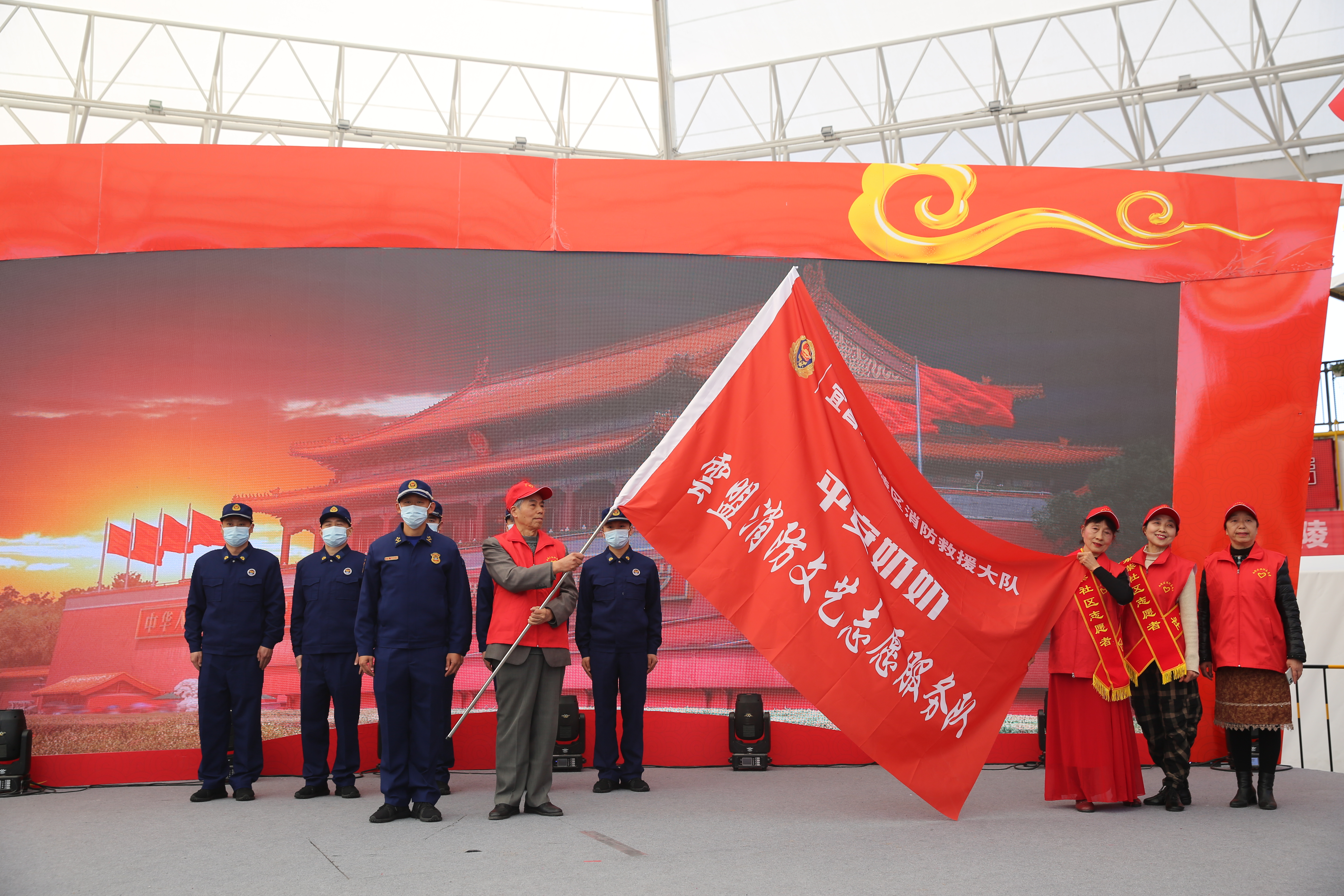 活動(dòng)最后,西陵區(qū)消防救援大隊(duì)向“平安奶奶”云盟消防救援文藝志愿服務(wù)隊(duì)授旗,并呼吁大家積極消防救援法律法規(guī)和相關(guān)知識(shí)的學(xué)習(xí),全面提高消防安全意識(shí),保障自身生命安全,共建幸福美好明天。