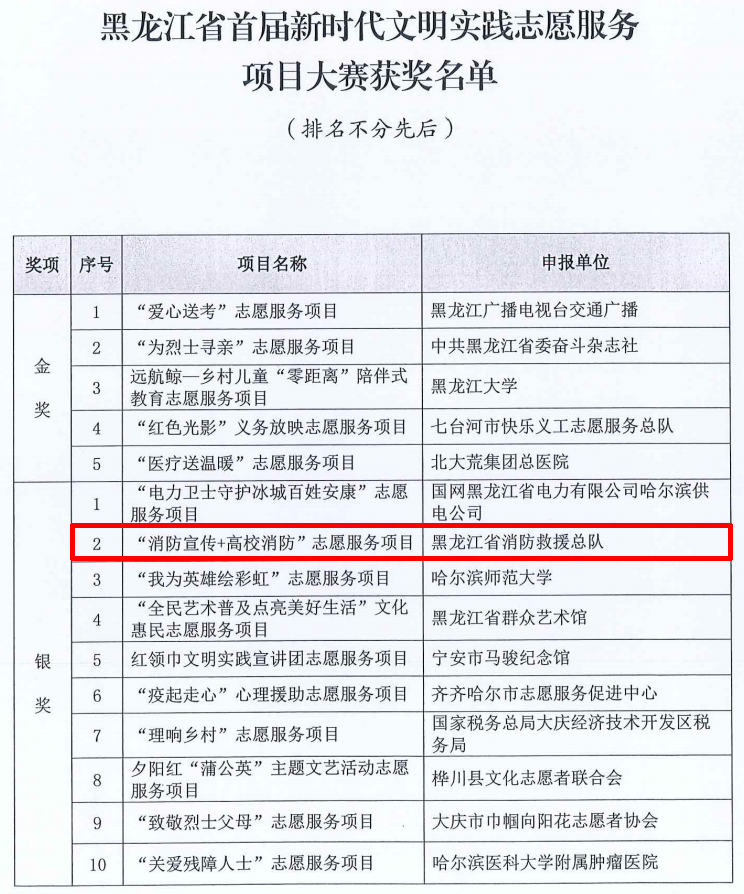 近日,由省文明辦主辦、省志愿服務基金會承辦的“黑龍江省新時代文明實踐志愿服務項目大賽”正式落下帷幕并下發(fā)獲獎通報,其中黑龍江省消防救援總隊《消防宣傳+高校消防志愿服務項目》喜獲大賽銀獎,為消防職業(yè)文化建設再添強勁動能,為黑龍江省消防志愿事業(yè)發(fā)展再注“強心劑”。