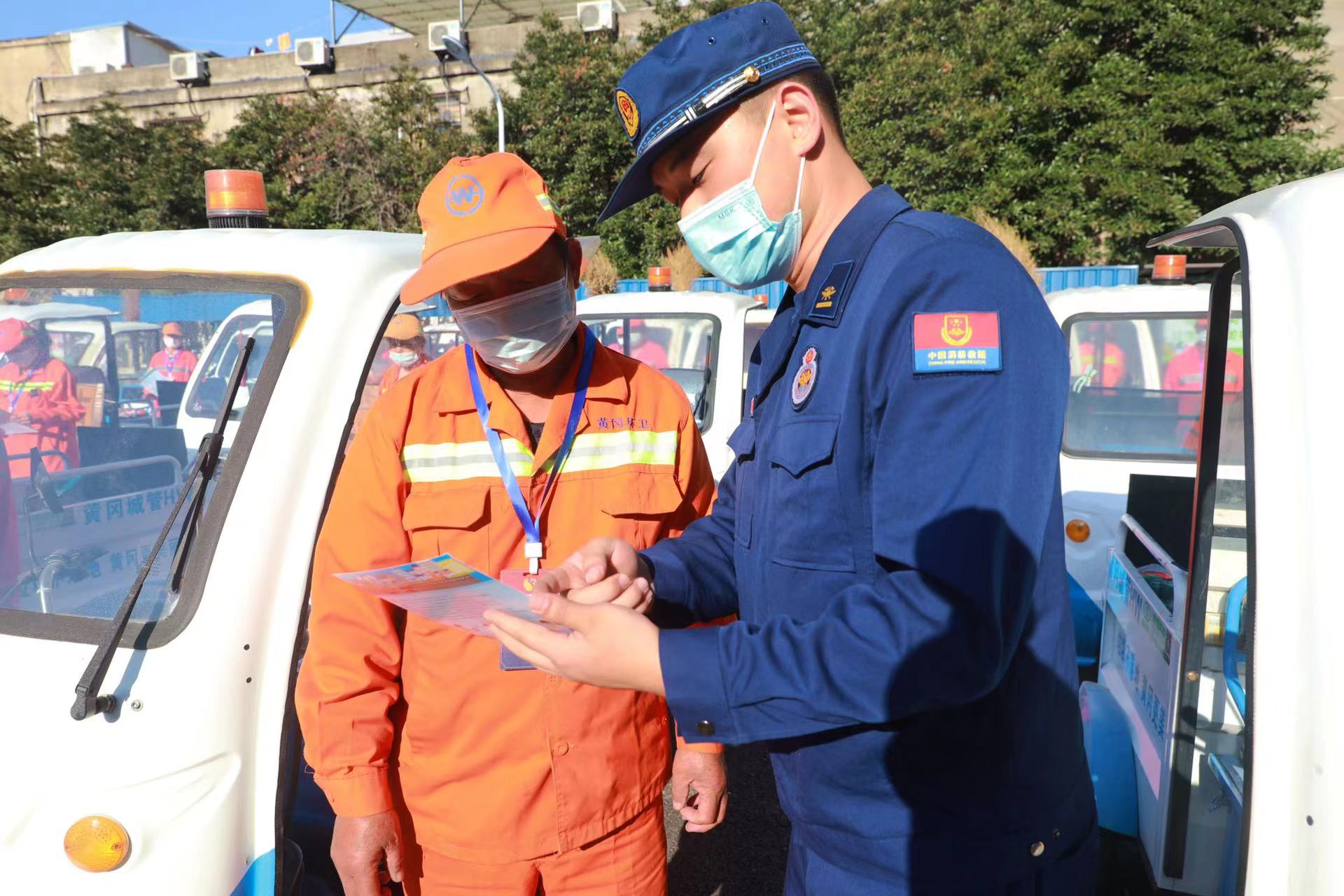 為切實做好防火工作,進一步延伸消防宣傳觸角,擴大消防宣傳覆蓋范圍,湖北省黃岡市消防救援支隊積極拓展志愿者服務渠道,充分發(fā)揮環(huán)衛(wèi)工人“分布面廣、流動性強”等特點,依托市區(qū)1081名環(huán)衛(wèi)工人、276臺巡回保潔管理作業(yè)電瓶車成立黃岡市環(huán)衛(wèi)消防志愿服務隊,一千多名環(huán)衛(wèi)工人消防志愿者在工作之余,開展消防安全宣傳活動。