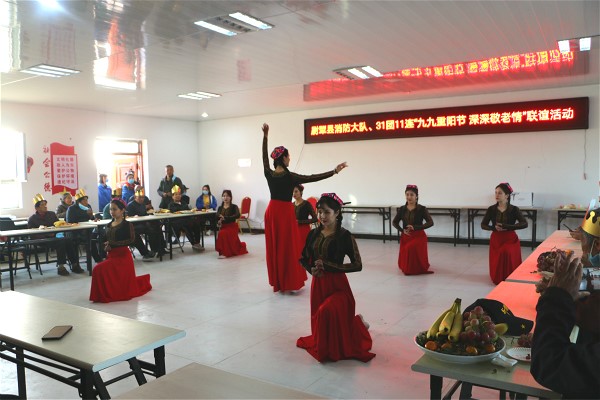 為大力弘揚尊老、愛老、敬老的中華傳統(tǒng)美德及革命傳統(tǒng)精神,將“五個不動搖”主題教育活動從“紙上談兵”邁向“實踐活動”,切實增強老人們的幸福感和存在感。10月22日,在重陽節(jié)即將到來之際,巴州支隊攜手共青團、消防志愿者走進第二師三十一團十一連,為老人們過集體生日、慰問演出、講解消防安全知識,開展入戶走訪、愛老敬老志愿服務(wù)等,讓老人們在享受社會大家庭溫暖的同時,感受到了“人間盡歡笑、晚年不孤獨”的美好意境。