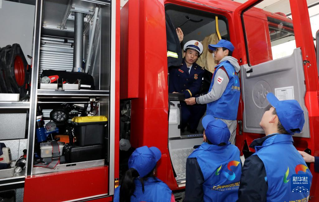 3月3日,“小小消防志愿者”服務(wù)隊(duì)隊(duì)員在消防員講解下了解消防車(chē)內(nèi)的設(shè)備。新華社記者方喆攝