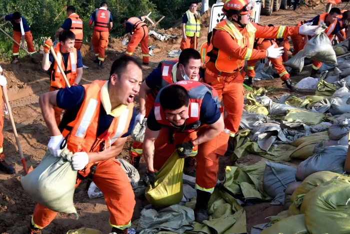 在張高峰眼里,救援是第一等的事,在隊(duì)工作時(shí)是這樣,休假在家時(shí)也是這樣。2021年7月,河南省遭遇嚴(yán)重洪澇災(zāi)害。正在休假的張高峰聞?dòng)?,提前歸隊(duì),連夜寫下請(qǐng)戰(zhàn)書,隨隊(duì)前往災(zāi)區(qū)救援。在鶴壁實(shí)施筑壩固堤作業(yè)時(shí),水勢(shì)突然猛漲,大壩瞬間出現(xiàn)缺口。危難關(guān)頭,張高峰帶頭跳入滾滾洪水中,與大家一起用人墻堵住決口,歷經(jīng)9小時(shí)終于將決口堵住。出來時(shí),他凍得嘴唇發(fā)紫?!澳転樾拗虊螤?zhēng)取時(shí)間,再苦再累,我都感覺值了?!睆埜叻寤貞浾f。