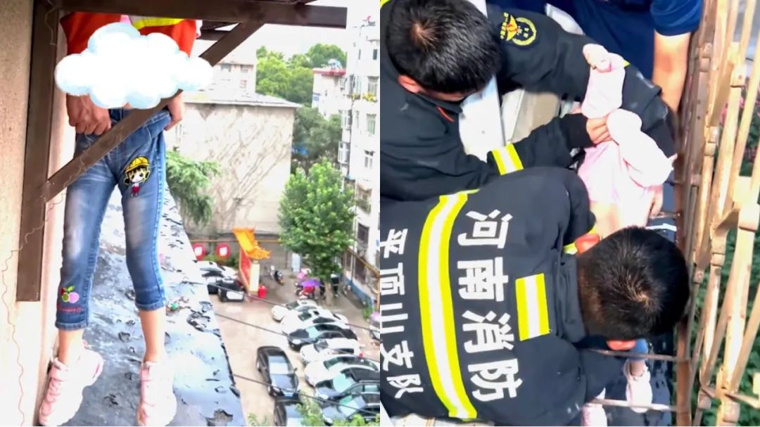 近日,河南省平頂山市湛河區(qū)某小區(qū)一名4歲女童頭卡7層防盜網(wǎng)身體在外懸掛,隨時都有墜落風(fēng)險。接警后,消防救援人員立即前往營救。抵達(dá)現(xiàn)場的消防員經(jīng)偵查得知,女童頭部卡在七層外陽臺窗戶防盜網(wǎng)縫隙中,下半身懸空吊在高處,腳下無著力點(diǎn)……
