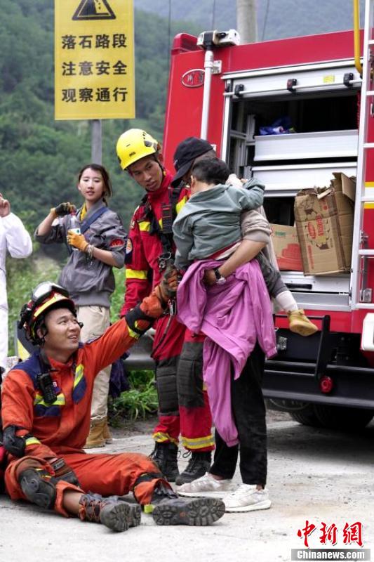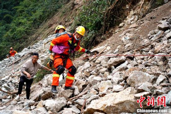 目前,四川消防救援隊伍共搜救被困人員243人,緊急疏散轉(zhuǎn)移遇險群眾6549人,排查危房9353棟。并在7個受災(zāi)群眾大型集中安置點駐勤40人,發(fā)放防火宣傳資料1萬余份、配置滅火器1200余具。圖為成都消防救援支隊飛貓救援隊正在轉(zhuǎn)移被困群眾。四川消防供圖