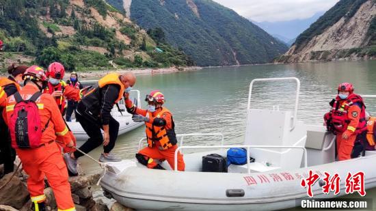 消防救援人員利用橡皮艇等疏散轉(zhuǎn)移紫雅場鎮(zhèn)被困群眾。四川消防供圖