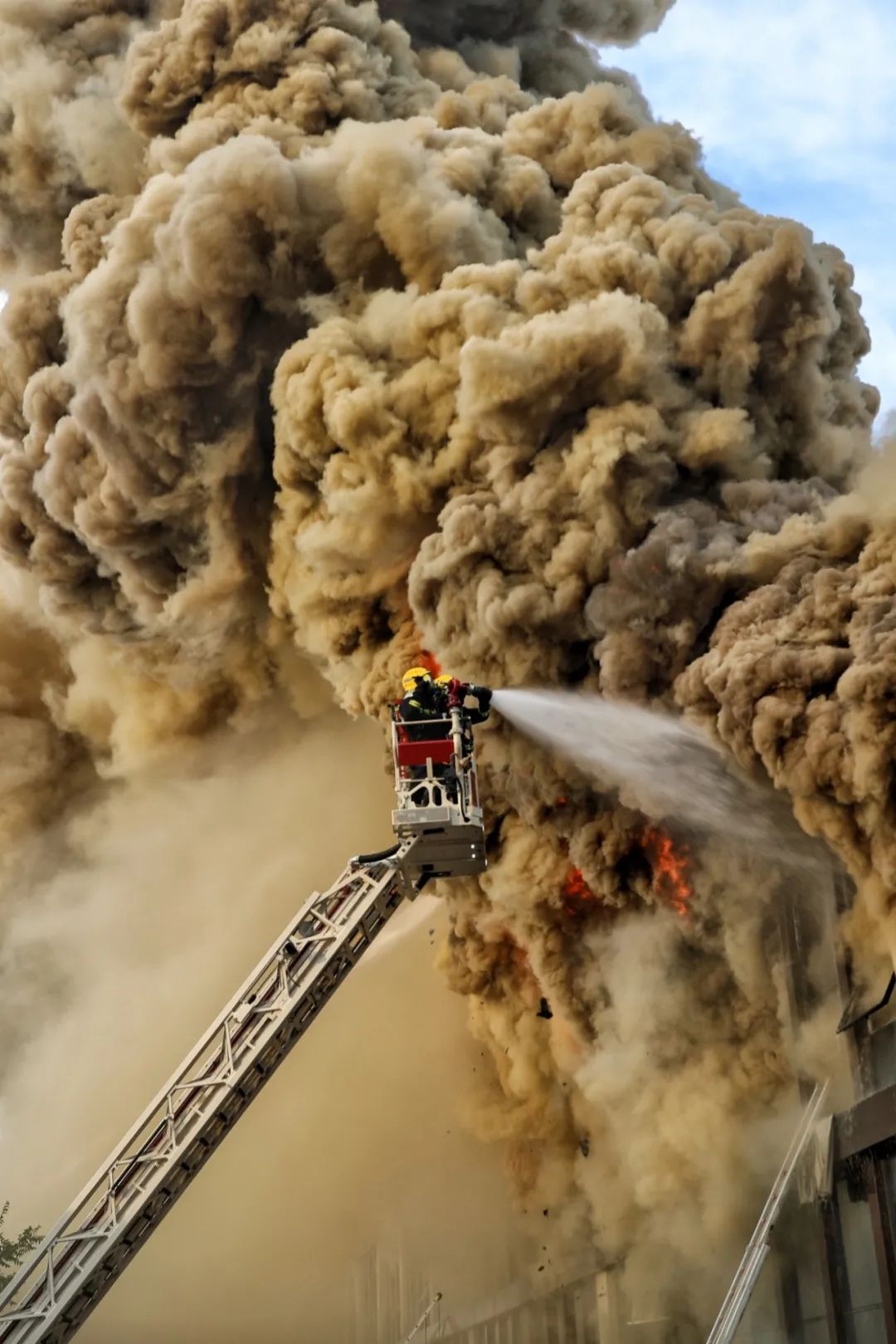 一個(gè)多小時(shí)后,下方火勢有所控制